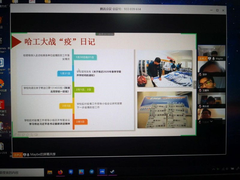 内容丰富,引发党员热烈讨论。本次第二课堂以“打赢疫情防控阻击战”为主题,以中央战“疫”日记、哈工大战“疫”日记、哈工大(威海)在行动、我们在行动为四个主要模块。重点梳理了党中央自一月二十日以来,与时间赛跑、与疫情战斗的重要决策部署,其中不乏与学生党员们息息相关的延迟返校、吸纳就业等措施。同时介绍了哈工大从一月二十三日发布《致哈工大学子的一封信》,再到校领导关心叮嘱疫情防控工作,开展工作领导小组会议等,体现了哈工大在面对紧急事件时高度敏捷的反应力和行动力。课程结束后,第一书记们向各位党员嘱咐:不大意、不恐慌、不盲从,在保证自身绝对安全的前提下,为社区防控贡献自己的力量,同时相信党中央的正确领导,坚定疫情防控必胜的决心!随后,党员积极发言,分享家乡疫情近况,畅谈感想感悟,无数医护人员冲锋一线,火神山、雷神山医院火速建成,基层防控落实到人,中国速度和中国力量无不让每位党员为之动容。