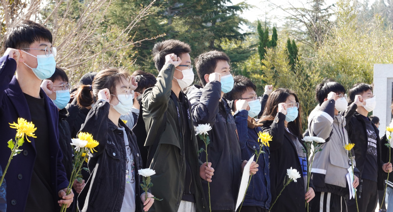 全体同学迎着晨风在庄严肃穆的纪念碑下肃立默哀,向革命烈士敬献花篮,表达对革命烈士的崇高敬意和深切悼念之情。学生代表王靖文发言:带领同学们共同追忆革命先烈的英勇事迹,深切缅怀革命先烈无私奉献、以国为重的伟大精神,表达青年学生继承先烈们遗志的信心和决心,以国家需要为己任,为中华民族伟大复兴贡献力量。全体同学在纪念碑下庄严宣誓,承诺将热爱祖国、努力学习、继承和发扬革命先烈的遗志、为祖国的建设和发展奉献自己的一份力量。